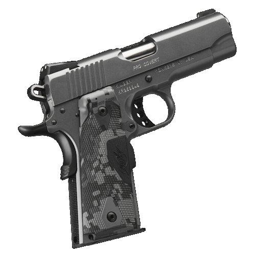 Pistola Kimber 1911 mod. Pro Covert II in cal. 45ACP, questo si caratterizza per la finitura superficiale grigia e le guancette mimetiche con laser Crimson Trace integrato. Organi di mira fissi e canna da 4″. Arma con standard qualitativi elevati e una precisione eccezionale, venduta completa di valigetta in ABS.